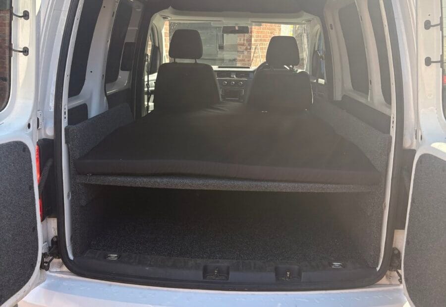 2019 Volkswagen Caddy Highline campervan, 1 owner, full service history, Apple car play/ android connect, Bluetooth dab stereo, carpet lined and insulated, electric mirrors and windows, rear LED lighting, Removable rear bed frame, cruise control, automatic wipers, Rear storage pockets and coat hangers, USB phone charging points. upgraded alloy wheels.