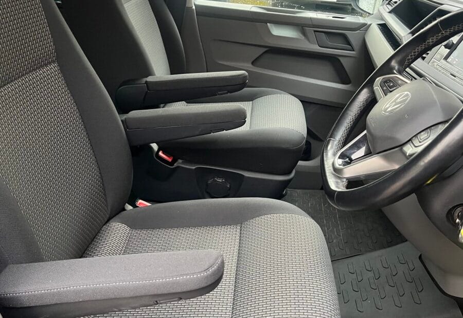 This van comes equipped with alloy wheels, colour coded bumpers, adaptive cruse control, front and rear parking assist sensors, automatic wipers, automatic headlights, android auto/ apple car play stereo, duel arm wrest captains chair, heated front seats , single double rear seats, bulkhead, ply lined rear, tail gate, front fog lights, leather multi function steering wheel, led interior lights and foot lights.